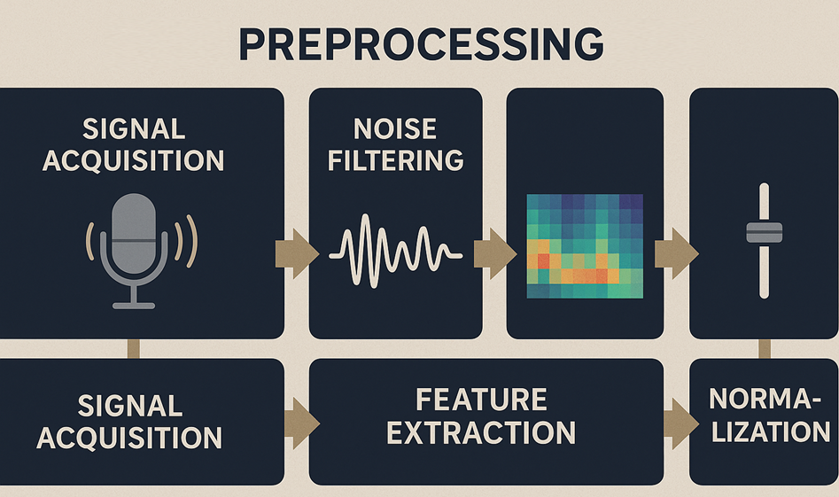 Bandpass filtering (e.g., 200 Hz – 7 kHz)