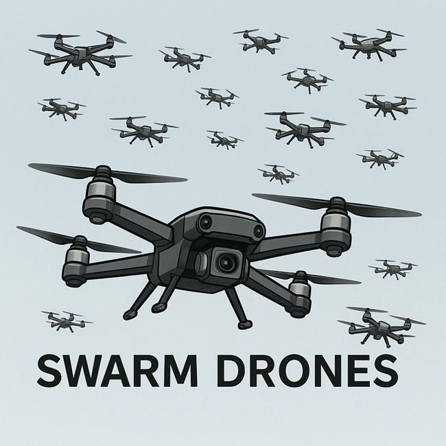 • Multiple drones coordinated to overwhelm defenses