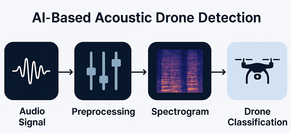 - Acoustic Detection: Directional microphone arrays trained to recognize drone audio signatures